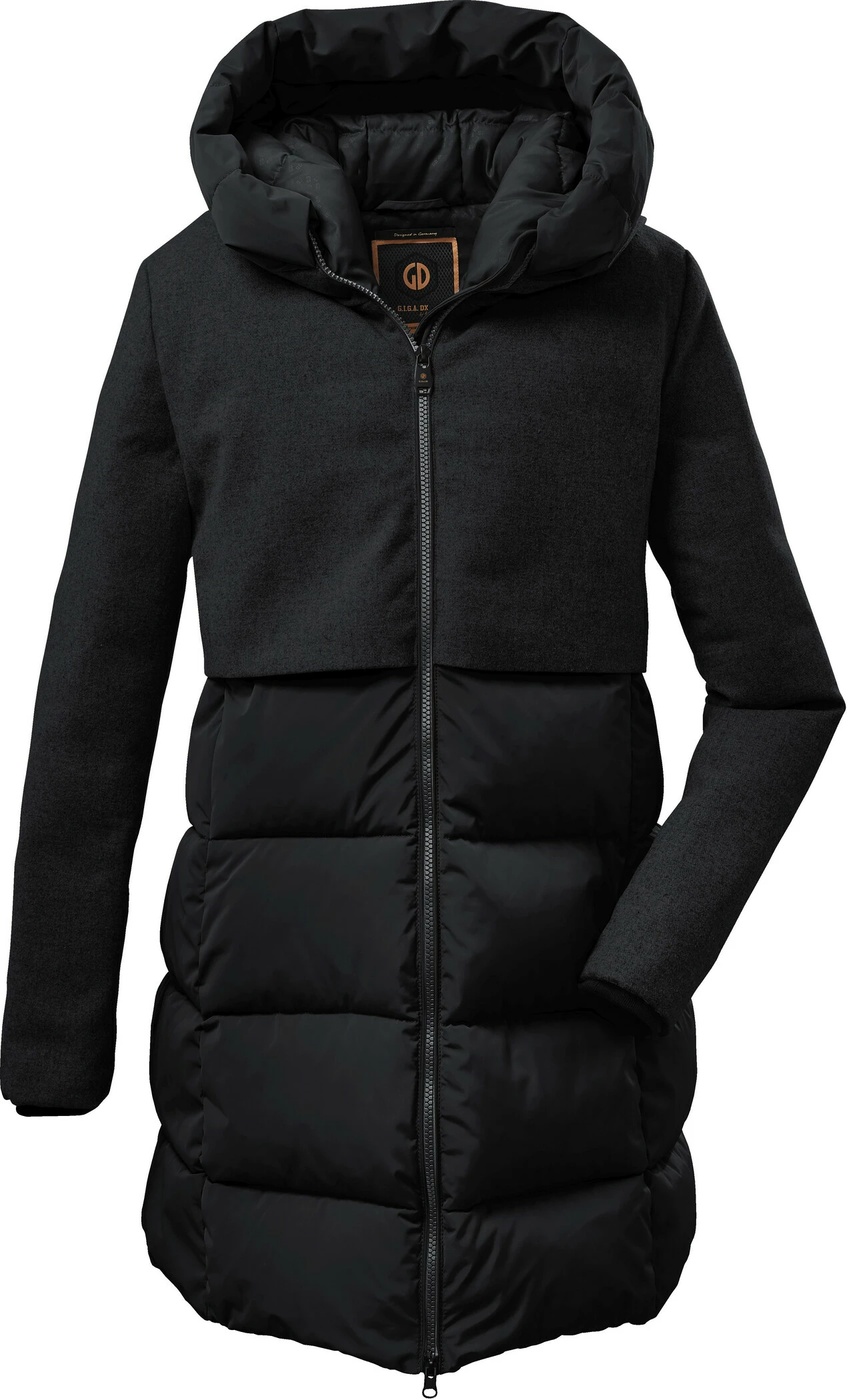Cette parka fonctionnelle tendance de G.I.G.A. DX attire l’attention. Le mĂ©lange de matières entre le tissu en laine et l’aspect matelassĂ© ainsi que la capuche surdimensionnĂ©e attirent l’attention. Avec une colonne d’eau de 8.000 mm, la parka est impermĂ©able et coupe-vent tout en Ă©tant respirante. La fermeture Ă©clair Ă double sens s’ouvre par le haut et par le bas, offrant ainsi une grande libertĂ© de mouvement. La veste possède Ă©galement deux poches pratiques pour les mains et une poche intĂ©rieure.